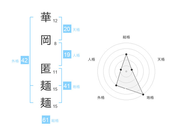 華岡 匿麺麺さんを姓名の画数から五運を鑑定