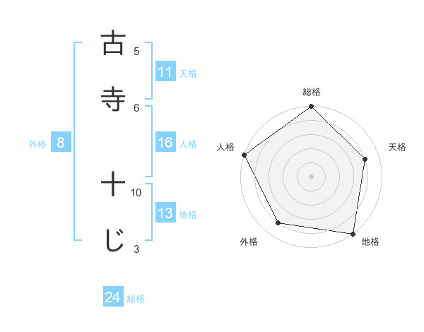 古寺 十じさんの総格は24画の5点!