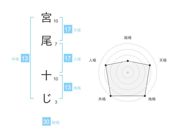宮尾 十じさんを姓名の画数から五運を鑑定