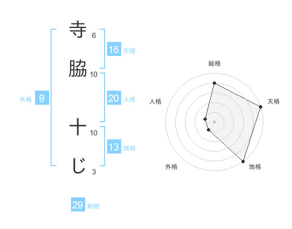 寺脇 十じさんの天格は16画の5点!