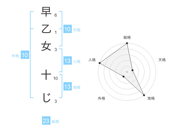 早乙女 十じさんを姓名の画数から五運を鑑定
