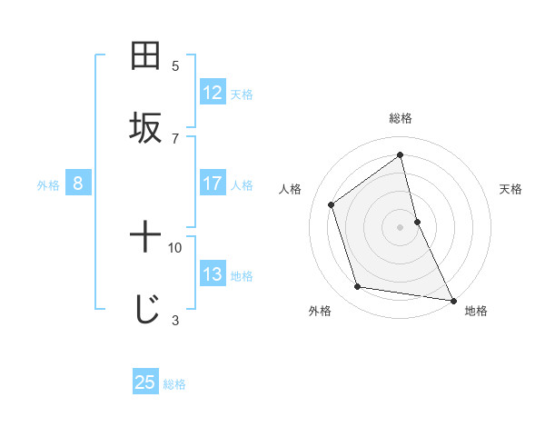 田坂 十じさんの地格は13画の5点!