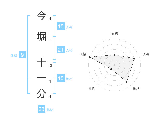 今堀 十一分さんを姓名の画数から五運を鑑定