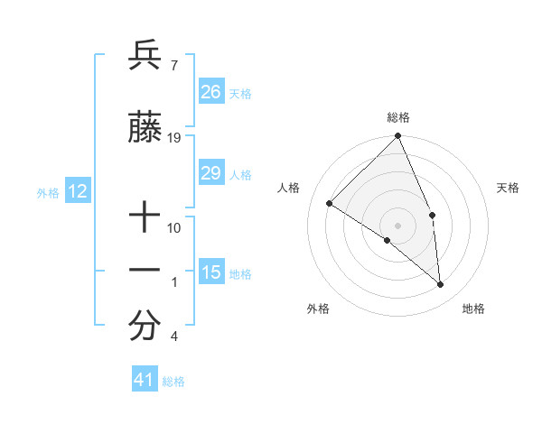 兵藤 十一分さんを姓名の画数から五運を鑑定