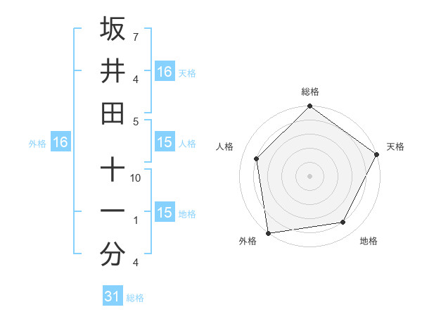 坂井田 十一分さんの総格は31画の5点!