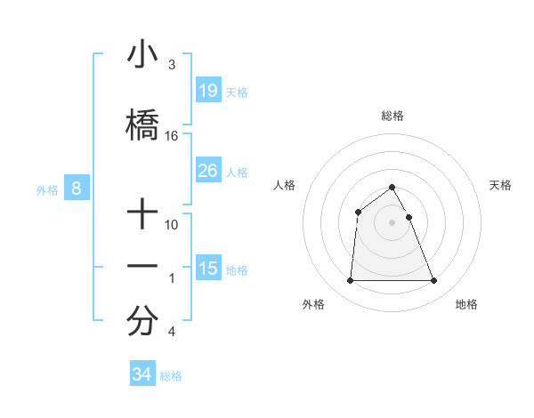 小橋 十一分さんを姓名の画数から五運を鑑定