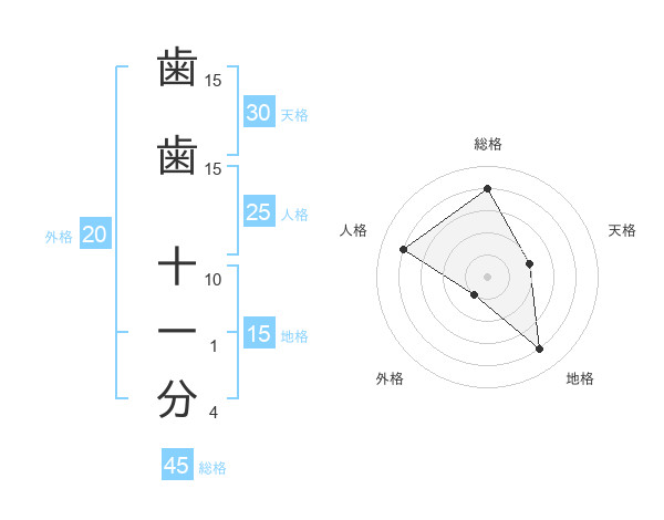 歯歯 十一分さんを姓名の画数から五運を鑑定