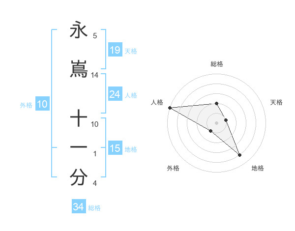 永嶌 十一分さんを姓名の画数から五運を鑑定