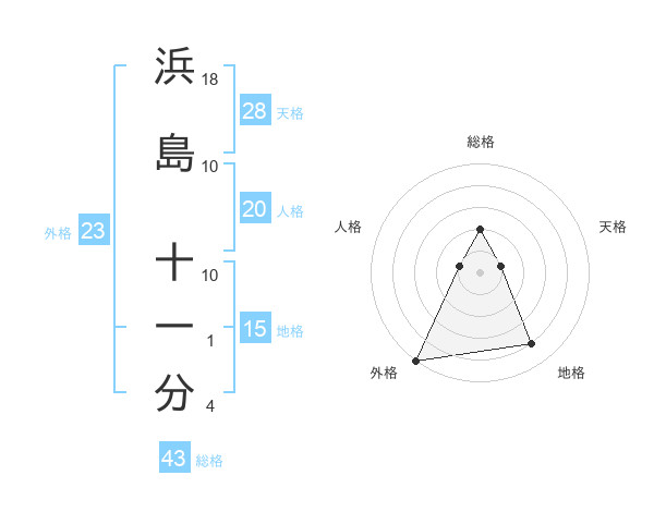 浜島 十一分さんを姓名の画数から五運を鑑定