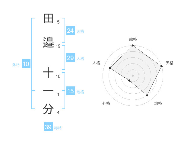 田邉 十一分さんを姓名の画数から五運を鑑定