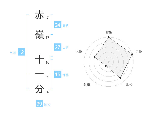 赤嶺 十一分さんを姓名の画数から五運を鑑定