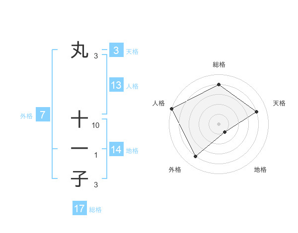 丸 十一子さんの総格は17画の4点!