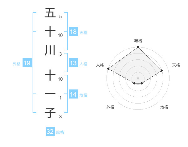 五十川 十一子さんを姓名の画数から五運を鑑定