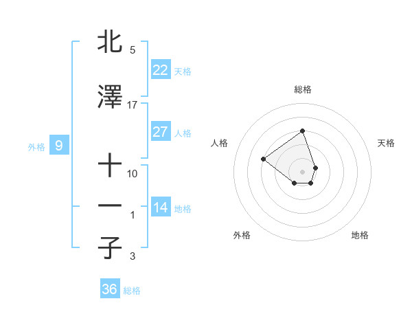 北澤 十一子さんの天格は22画の1点!