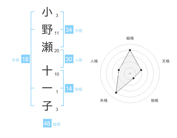 小野瀬 十一子さんを姓名の画数から五運を鑑定