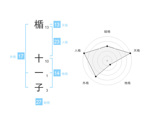 楯 十一子さんの天格は13画の5点!