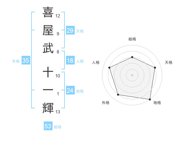 喜屋武 十一輝さんの外格は35画の4点!