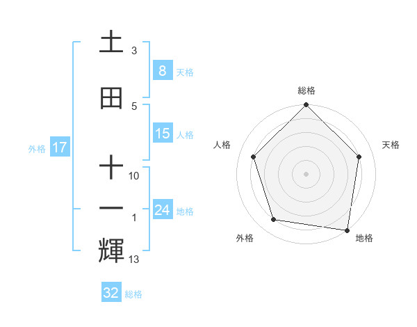 土田 十一輝さんを姓名の画数から五運を鑑定