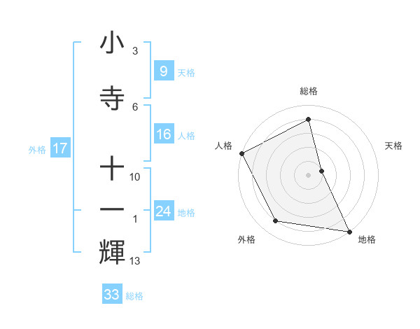 小寺 十一輝さんを姓名の画数から五運を鑑定