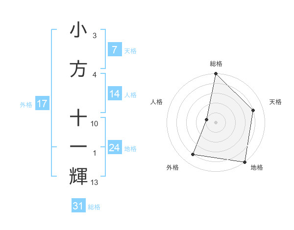 小方 十一輝さんを姓名の画数から五運を鑑定