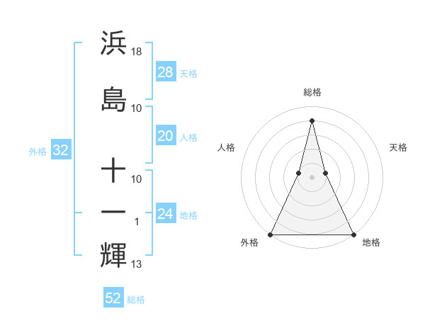 浜島 十一輝さんを姓名の画数から五運を鑑定