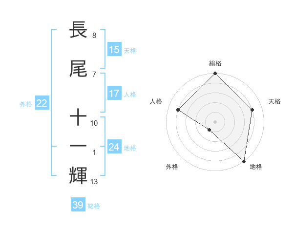 長尾 十一輝さんを姓名の画数から五運を鑑定