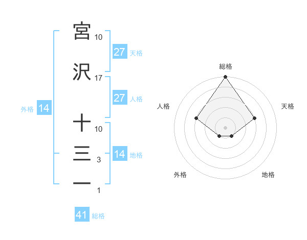 宮沢 十三一さんを姓名の画数から五運を鑑定