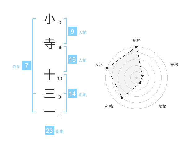 小寺 十三一さんの総格は23画の5点!