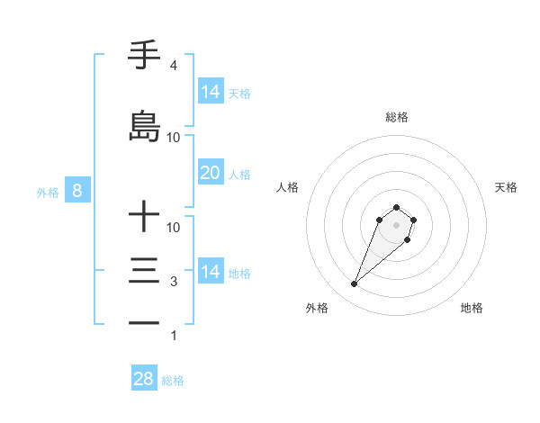手島 十三一さんの外格は8画の4点!