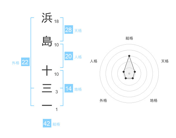 浜島 十三一さんの総格は42画の3点!