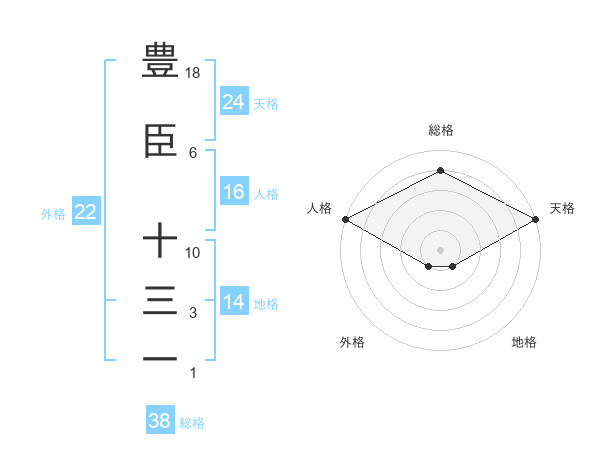 豊臣 十三一さんを姓名の画数から五運を鑑定