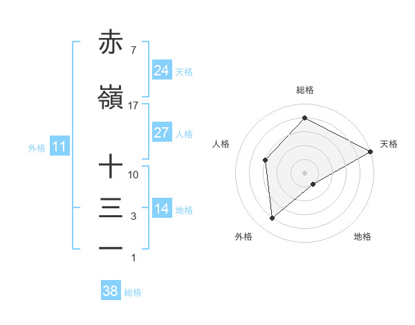 赤嶺 十三一さんを姓名の画数から五運を鑑定