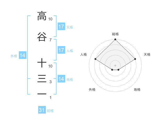 高谷 十三一さんを姓名の画数から五運を鑑定