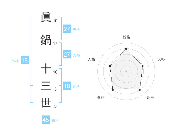眞鍋 十三世さんの総格は45画の4点!