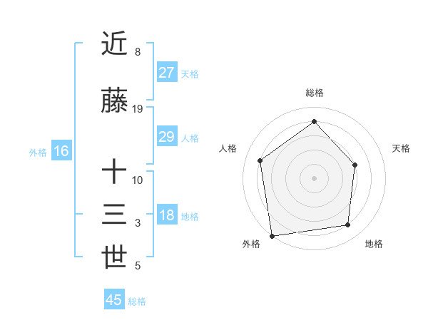 近藤 十三世さんを姓名の画数から五運を鑑定