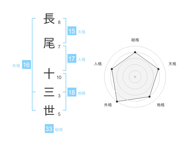 長尾 十三世さんを姓名の画数から五運を鑑定