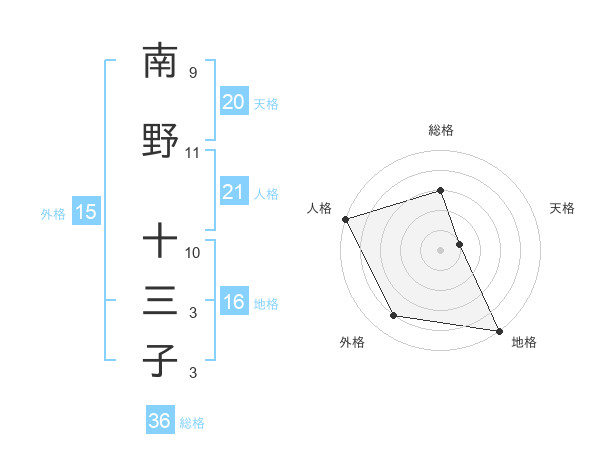 南野 十三子さんの地格は16画の5点!