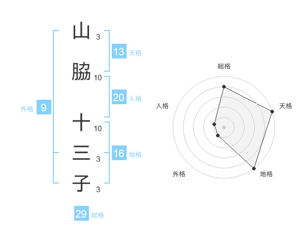 山脇 十三子さんを姓名の画数から五運を鑑定