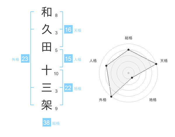 和久田 十三架さんを姓名の画数から五運を鑑定