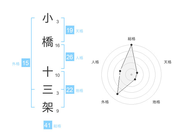 小橋 十三架さんを姓名の画数から五運を鑑定