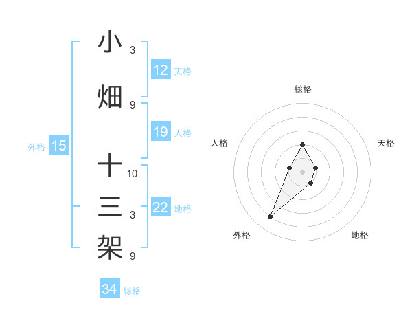 小畑 十三架さんを姓名の画数から五運を鑑定