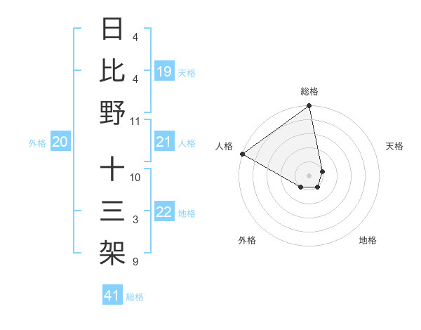 日比野 十三架さんの総格は41画の5点!