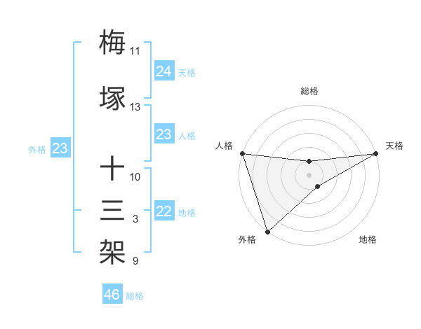 梅塚 十三架さんを姓名の画数から五運を鑑定
