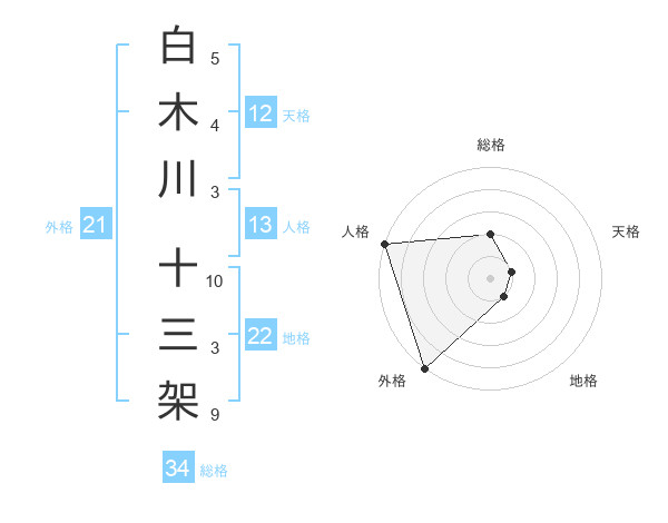 白木川 十三架さんを姓名の画数から五運を鑑定