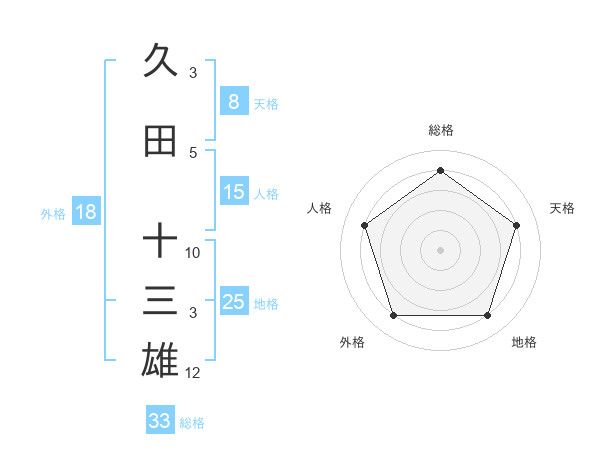 久田 十三雄さんを姓名の画数から五運を鑑定