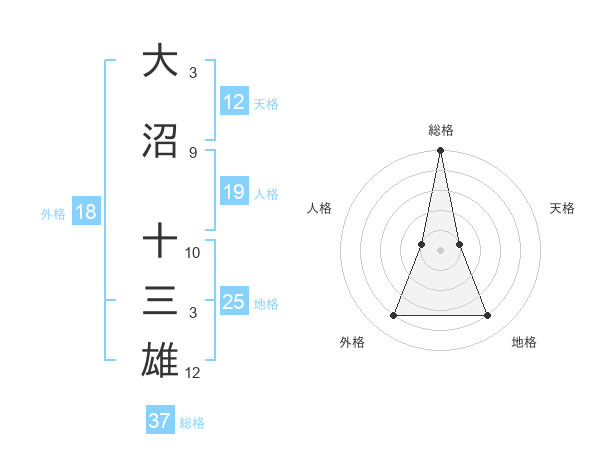 大沼 十三雄さんを姓名の画数から五運を鑑定