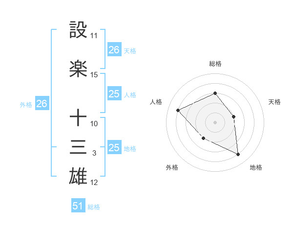 設楽 十三雄さんを姓名の画数から五運を鑑定