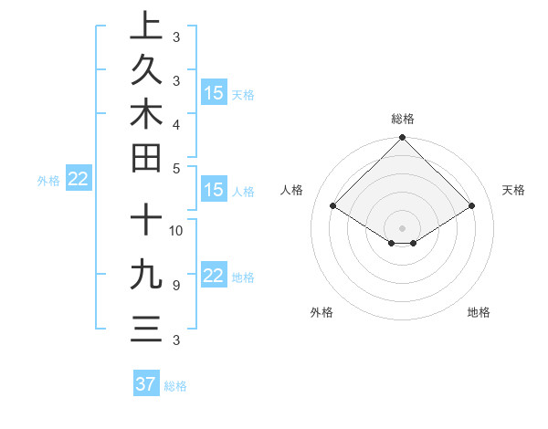 上久木田 十九三さんを姓名の画数から五運を鑑定