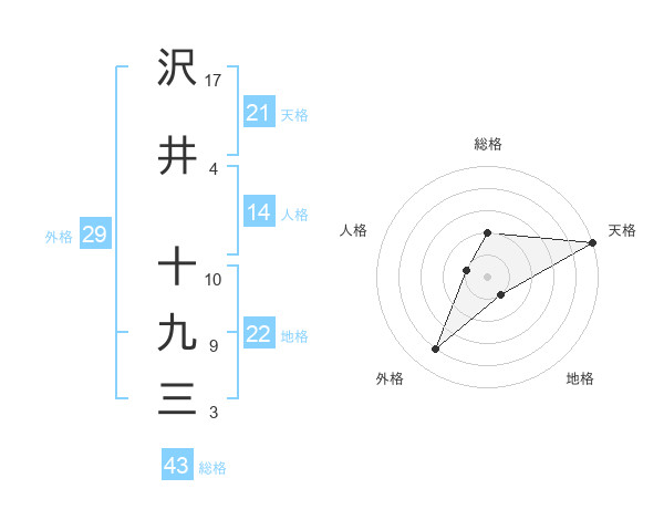 沢井 十九三さんを姓名の画数から五運を鑑定