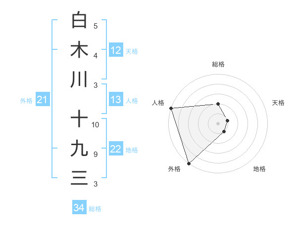 白木川 十九三さんを姓名の画数から五運を鑑定